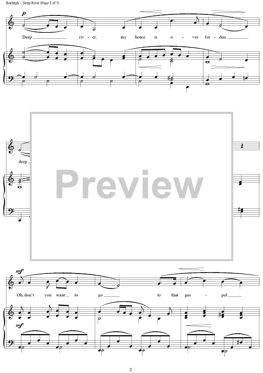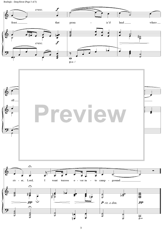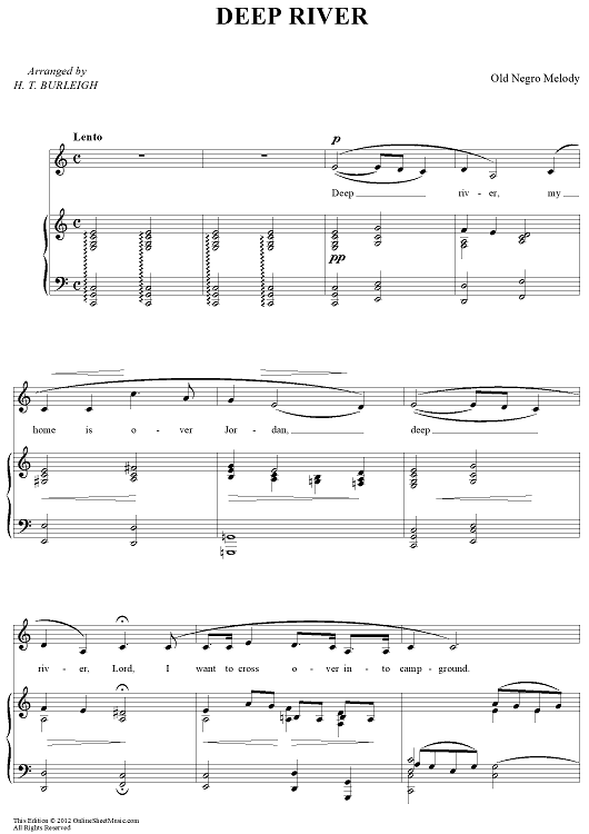 Digital Sheet Music for Deep River by H. T. Burleigh, African-American Traditional scored for Piano/Vocal; id:433050