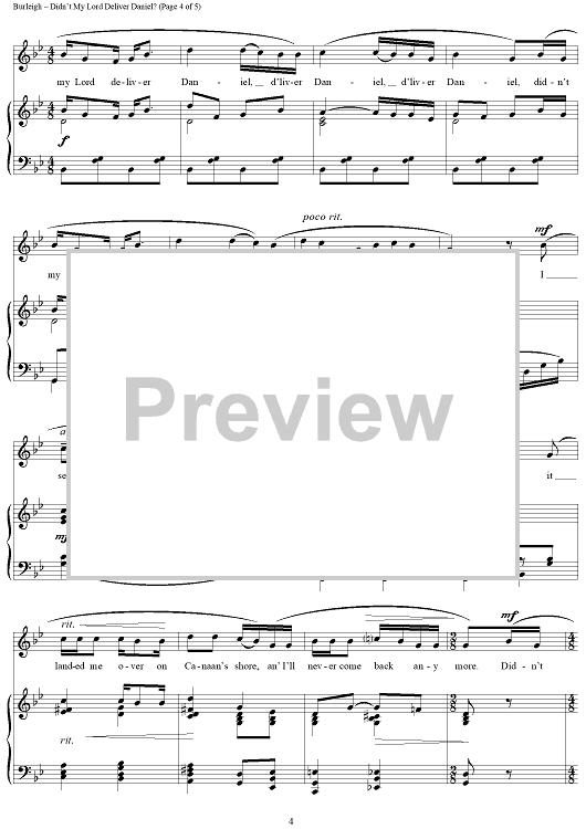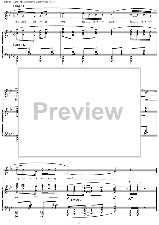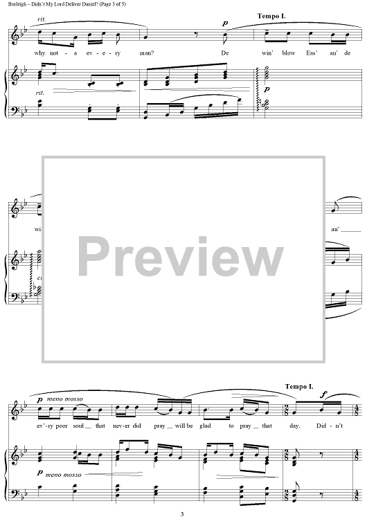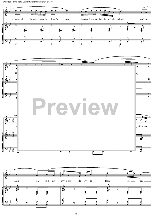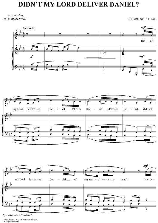 Digital Sheet Music for Didn't My Lord Deliver Daniel? by H. T. Burleigh, African American Spiritual scored for Piano/Vocal; id:433135