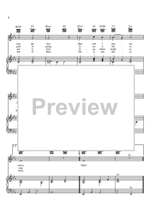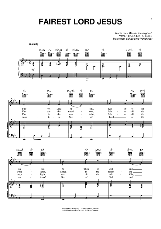 Digital Sheet Music for Fairest Lord Jesus by Richard Storrs Willis, Munster Gesangbuch, Joseph August Seiss, Schlesische Volkslieder scored for Piano/Vocal/Chords; id:368471