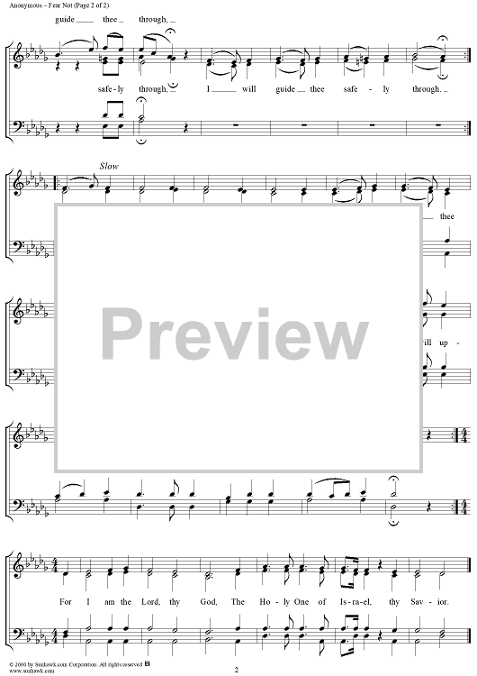Digital Sheet Music for Fear Not by Unknown Writer scored for Four-part Mixed Chorus; id:277397