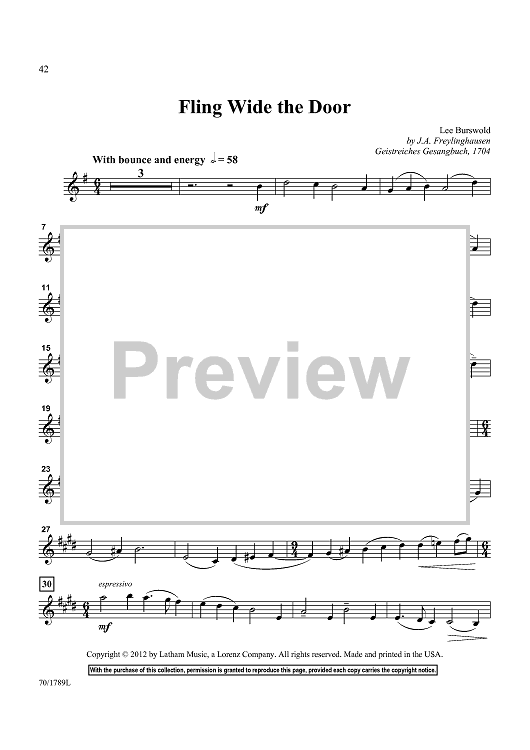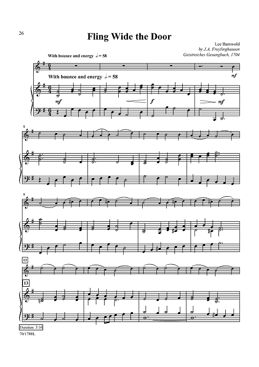 Digital Sheet Music for Fling Wide the Door by Geistliche Gesangbuch, Lee Burswold scored for Violin/Piano; id:437726