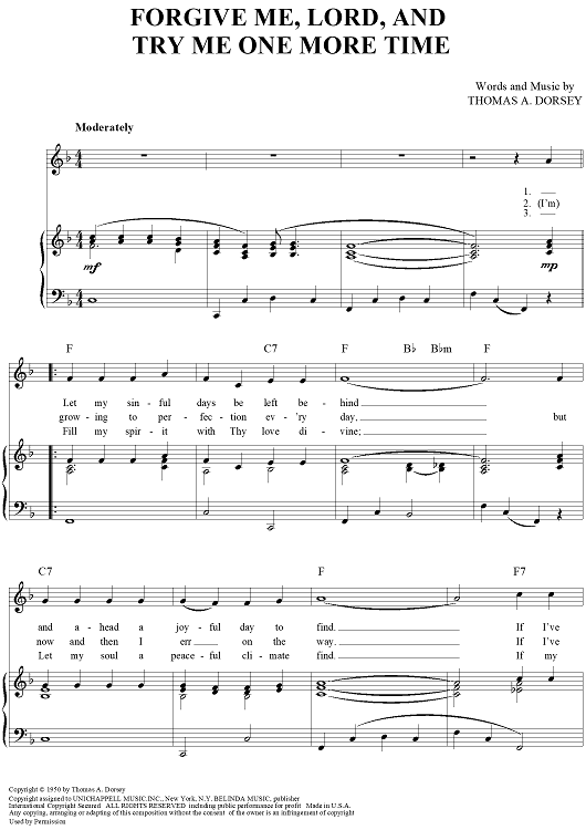 Digital Sheet Music for Forgive Me, Lord, And Try Me One More Time by Thomas A. Dorsey scored for Piano/Vocal/Chords; id:363806