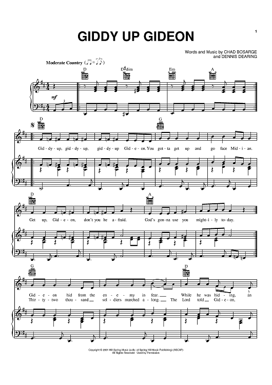 Digital Sheet Music for Giddy Up Gideon by Chad Bosarge, Dennis Dearing scored for Piano/Vocal/Chords; id:373735