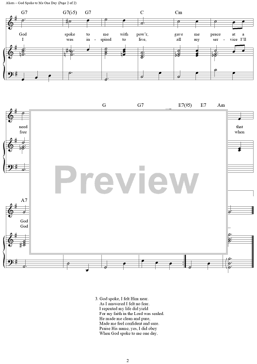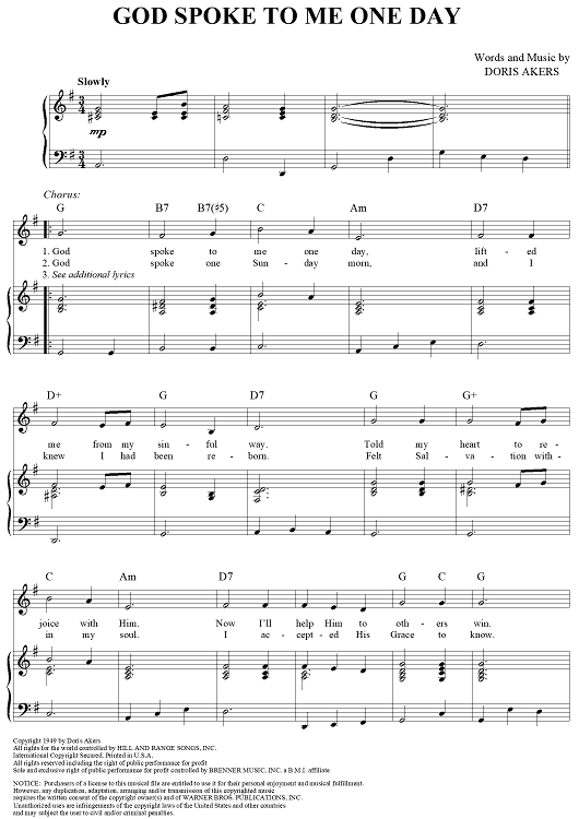 Digital Sheet Music for God Spoke to Me One Day by Mahalia Jackson, Doris Akers scored for Piano/Vocal/Chords; id:356057
