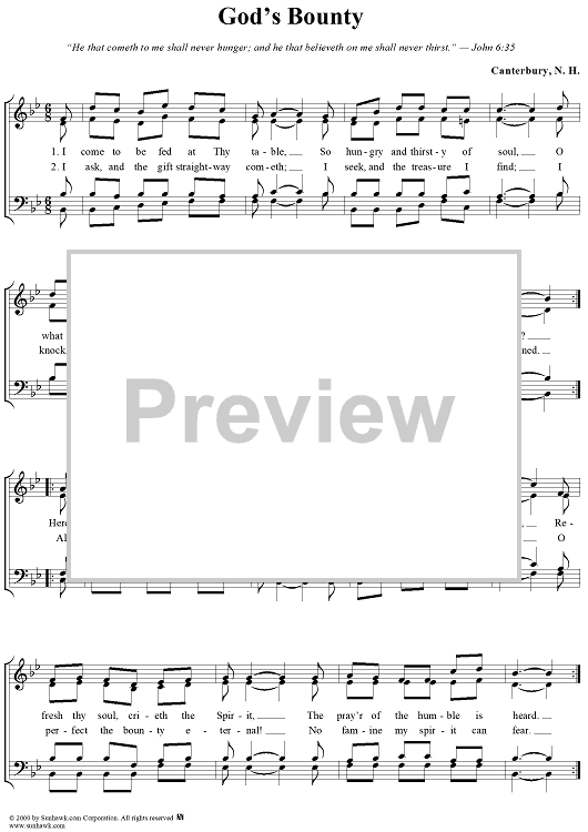 Digital Sheet Music for God's Bounty by Unknown Writer scored for Four-part Mixed Chorus; id:277414