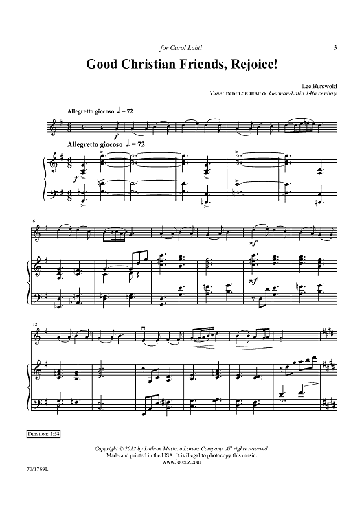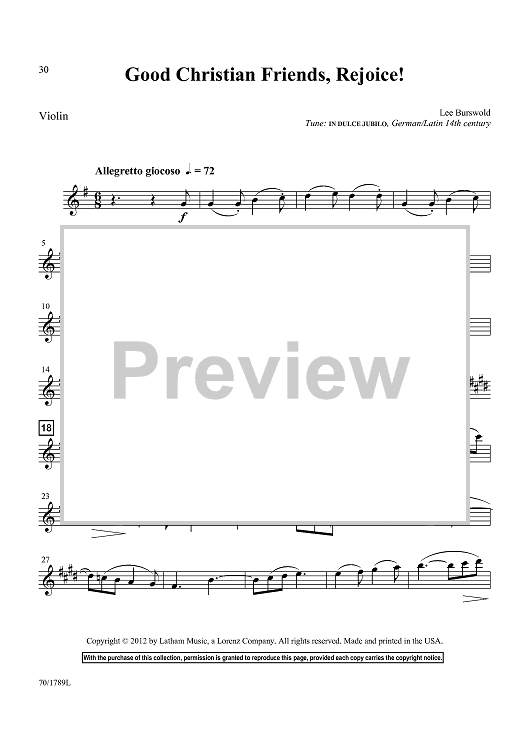 Digital Sheet Music for Good Christian Friends, Rejoice! by Unknown, Lee Burswold scored for Violin/Piano; id:437720