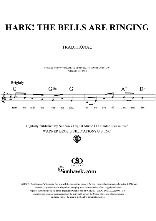 Digital Sheet Music for Hark! The Bells Are Ringing by Traditional scored for Lead Sheet; id:261127