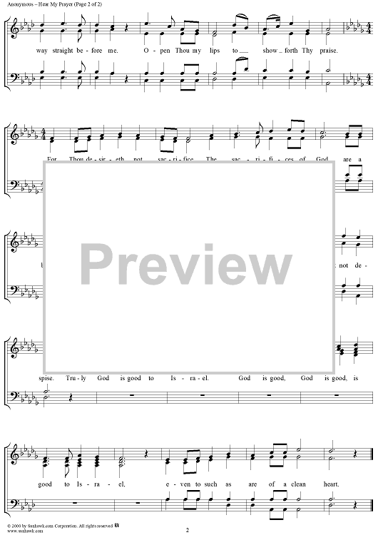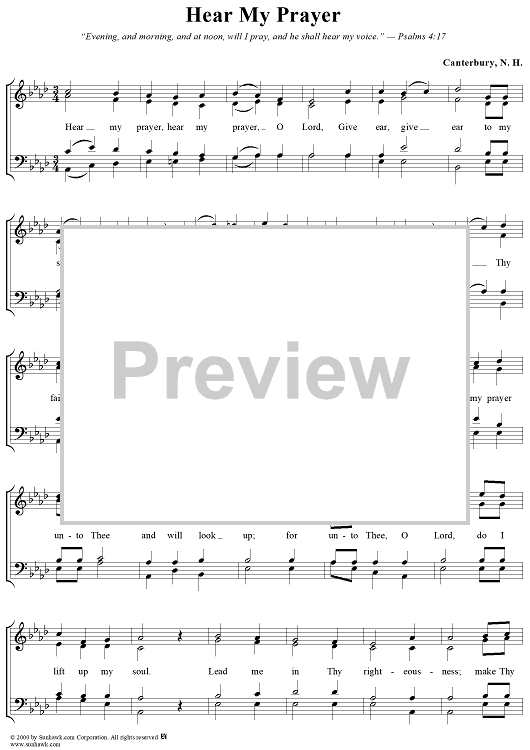 Digital Sheet Music for Hear My Prayer by Unknown Writer scored for Four-part Mixed Chorus; id:277474