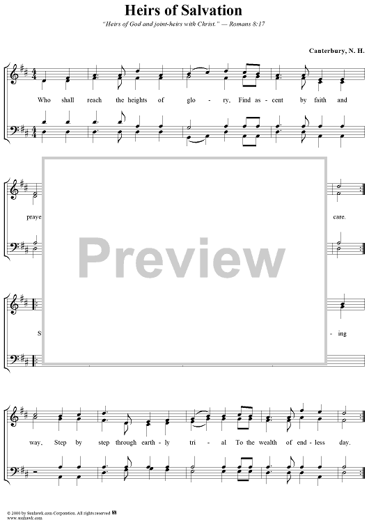 Digital Sheet Music for Heirs of Salvation by Unknown Writer scored for Four-part Mixed Chorus; id:277483