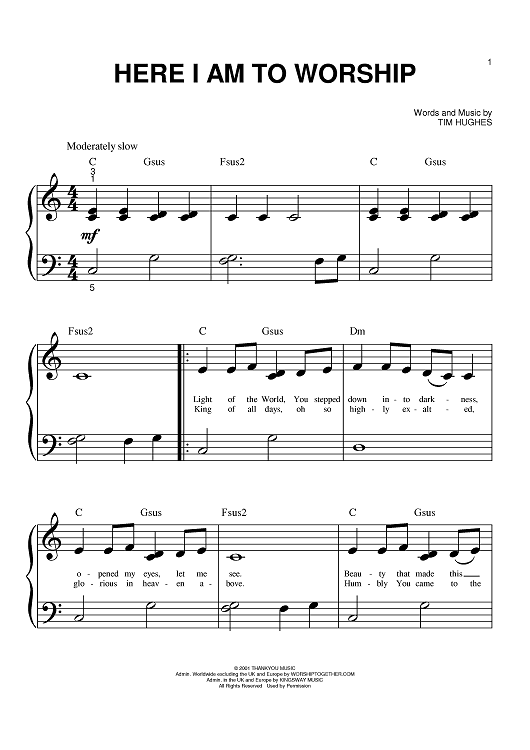 "Here I Am To Worship" Sheet Music by Tim Hughes