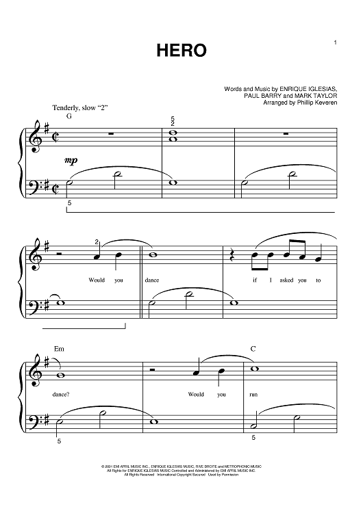 Digital Sheet Music for Hero by Enrique Iglesias, Mark Taylor, Paul Barry, Phillip Keveren scored for Big Note Piano; id:384962