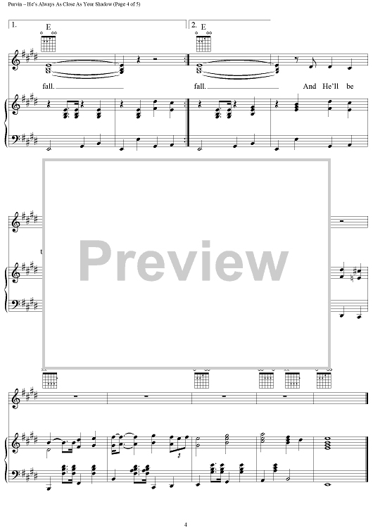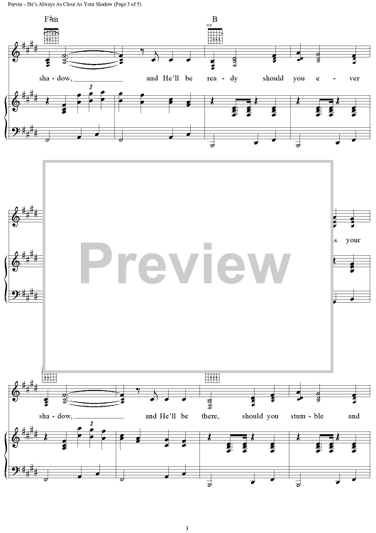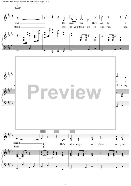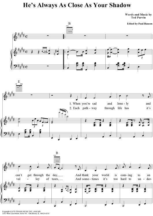 Digital Sheet Music for He's Always As Close As Your Shadow by Ted Purvin, The Kendalls scored for Piano/Vocal/Chords; id:95893