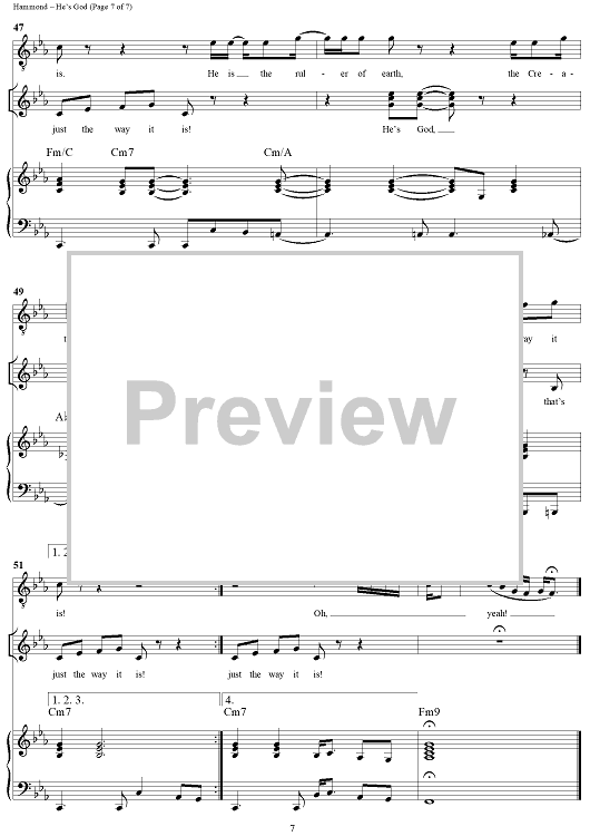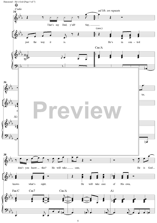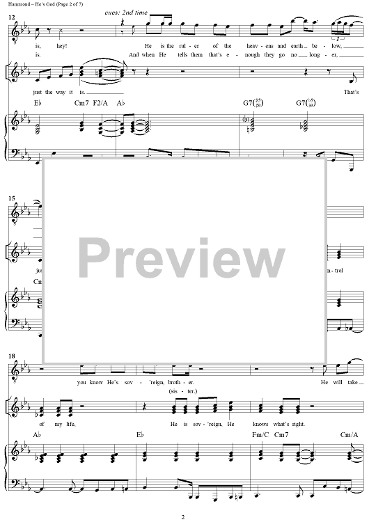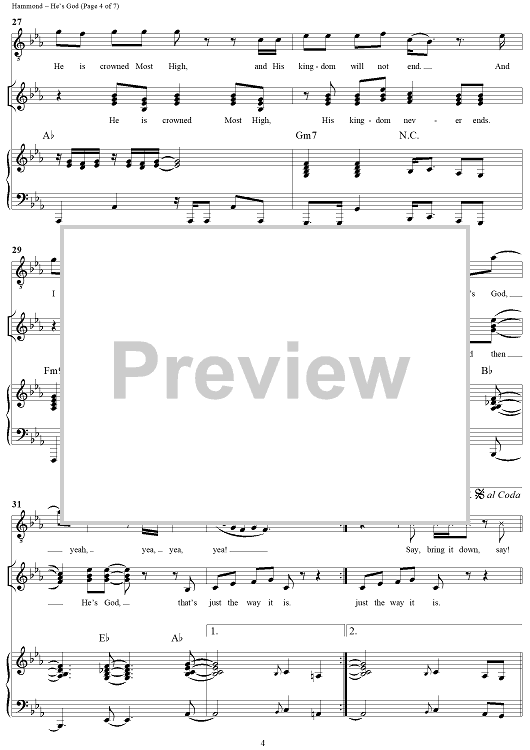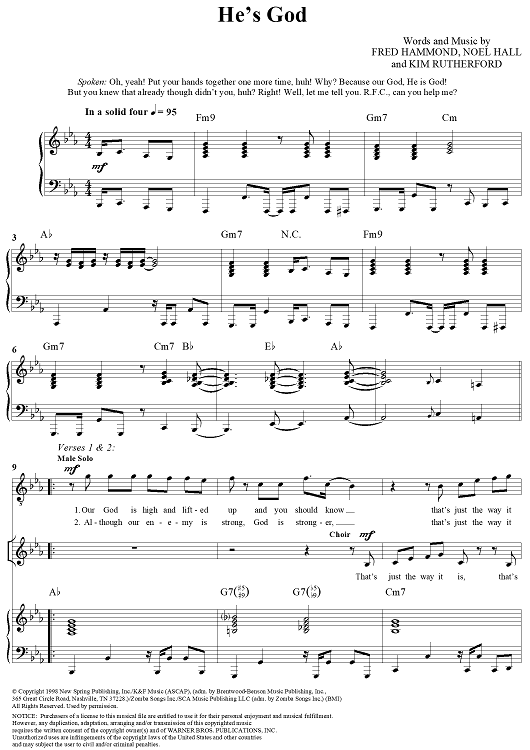 Digital Sheet Music for He's God by Fred Hammond, Noel Hall, Kim Rutherford, Radical For Christ scored for Piano/Vocal/Chords; id:266857