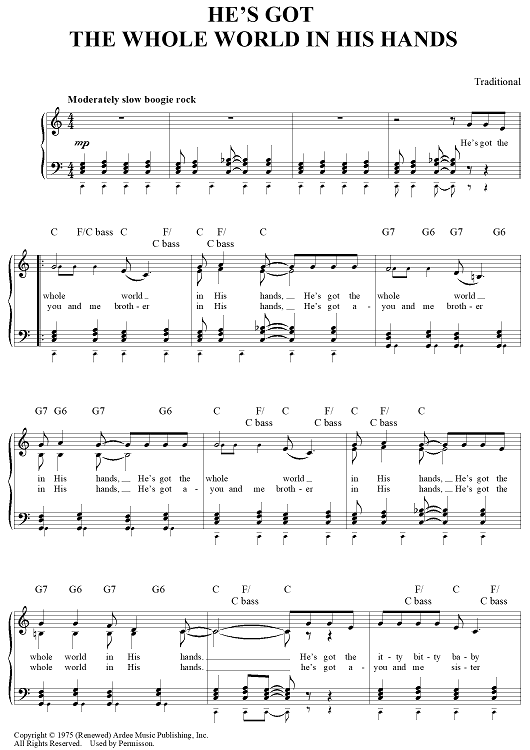 "He's Got The Whole World In His Hands" Sheet Music by Traditional