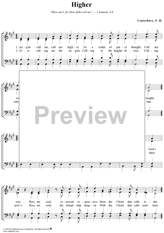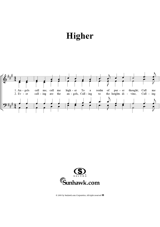 Digital Sheet Music for Higher by Unknown Writer scored for Four-part Mixed Chorus; id:277712