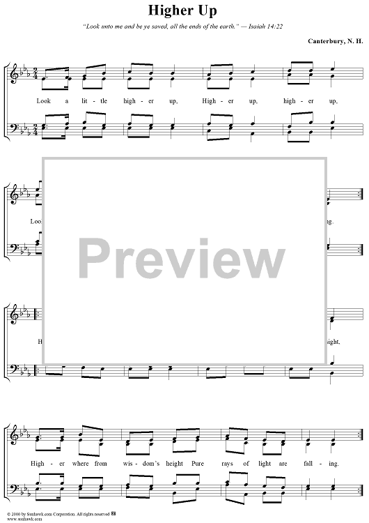 Digital Sheet Music for Higher Up by Unknown Writer scored for Four-part Mixed Chorus; id:277713