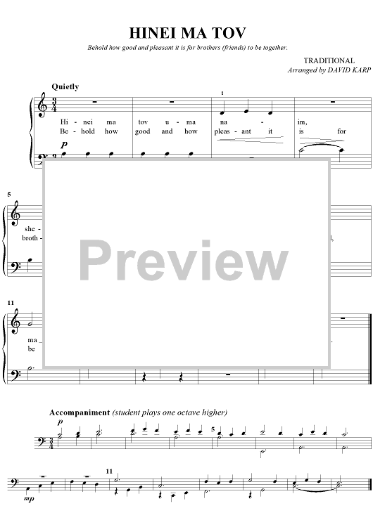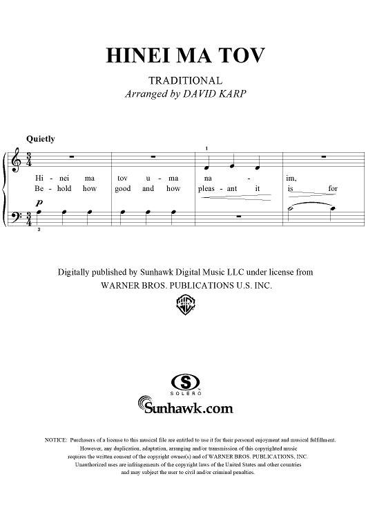 Digital Sheet Music for Hinei Ma Tov by David Karp, Traditional scored for Easy Piano/Vocal; id:261226