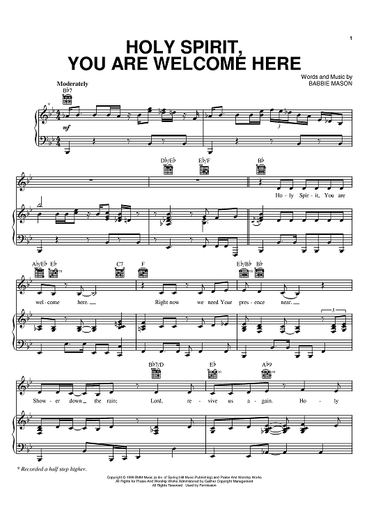 Digital Sheet Music for Holy Spirit, You Are Welcome Here by Babbie Mason scored for Piano/Vocal/Chords; id:386621