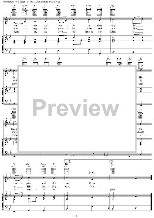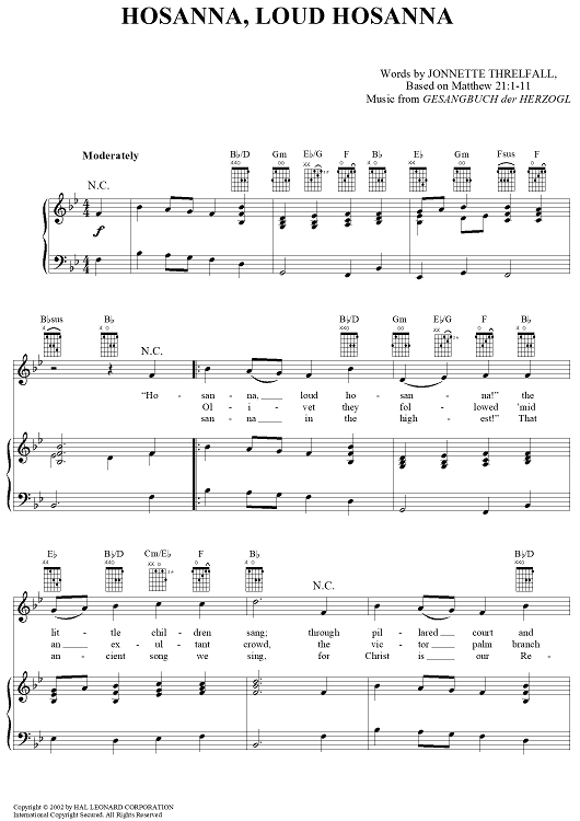 Digital Sheet Music for Hosanna, Loud Hosanna by Jennette Threlfall, Gesangbuch der Herzogl scored for Piano/Vocal/Chords; id:367627