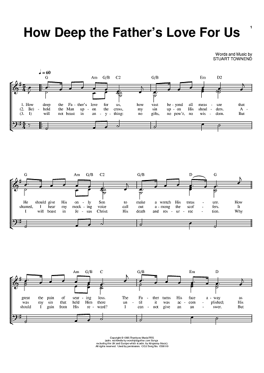 Digital Sheet Music for How Deep The Father's Love For Us by Stuart Townend, Sarah Sadler, Phillips, Craig and Dean scored for Piano/Vocal/Chords; id:393771