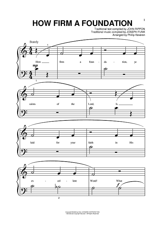 Digital Sheet Music for How Firm a Foundation by Joseph Joseph Funk, Phillip Keveren, John Rippon scored for Big Note Piano; id:385029