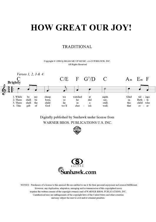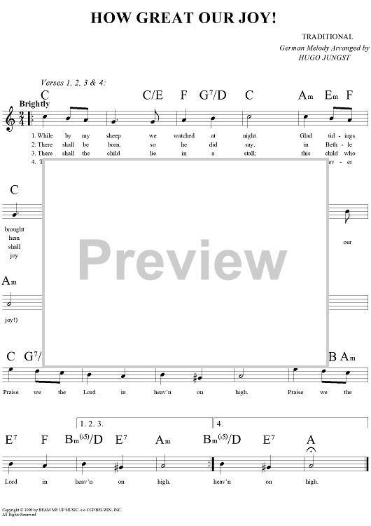 Digital Sheet Music for How Great Our Joy! by Hugo Jungst, Traditional scored for Lead Sheet; id:260725