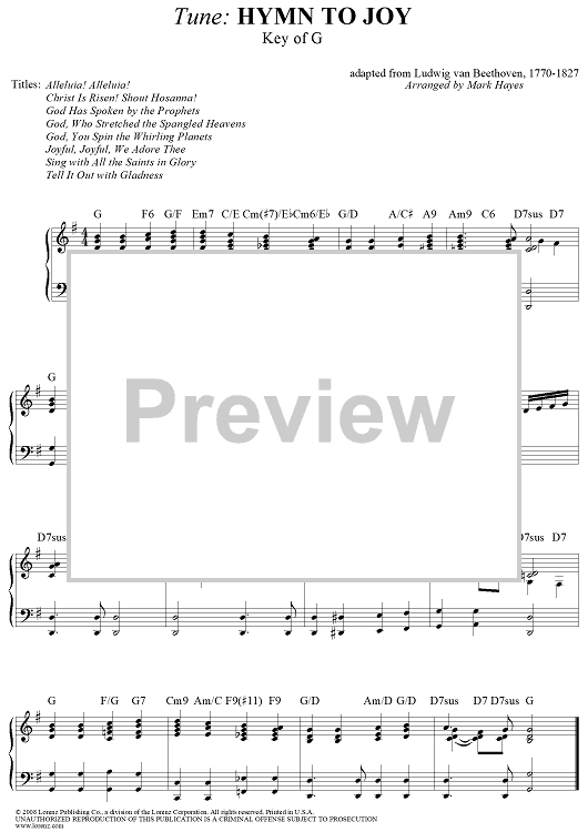 Digital Sheet Music for Hymn To Joy by , Ludwig van Beethoven, Mark Hayes scored for Piano Solo; id:436652