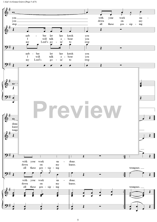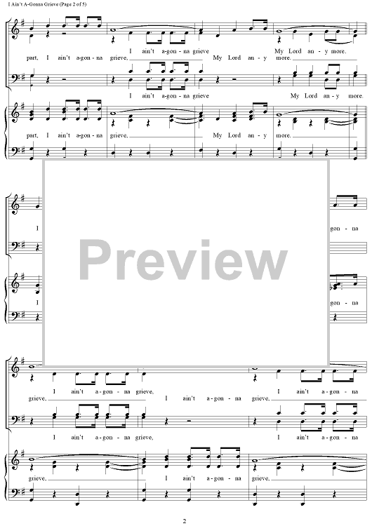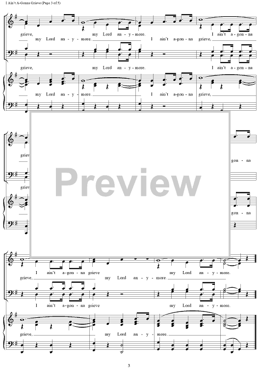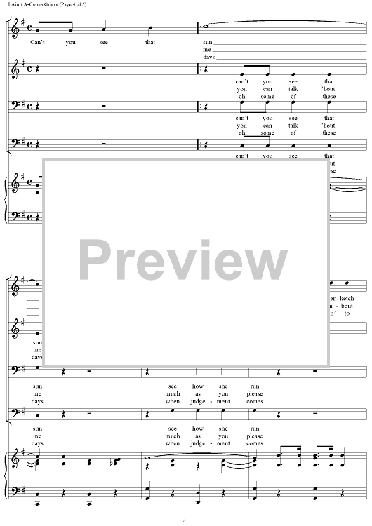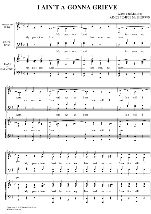 Digital Sheet Music for I Ain't Gonna Grieve by Aimee Semple McPherson scored for SATB Choir and Piano; id:422414