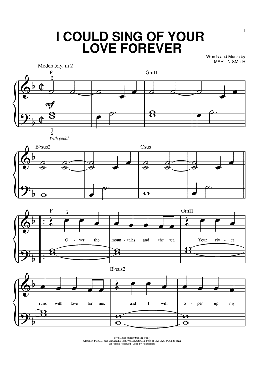 Digital Sheet Music for I Could Sing Of Your Love Forever by Martin Smith, Delirious?, Passion Band scored for Big Note Piano; id:382168