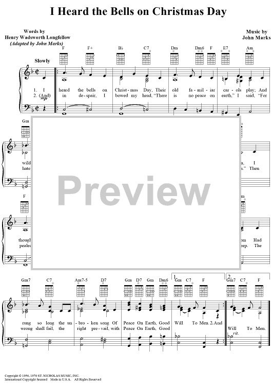 Digital Sheet Music for I Heard the Bells on Christmas Day by Frank Sinatra, Johnny Marks, Henry Wadsworth Longfellow scored for Piano/Vocal/Chords; id:110859