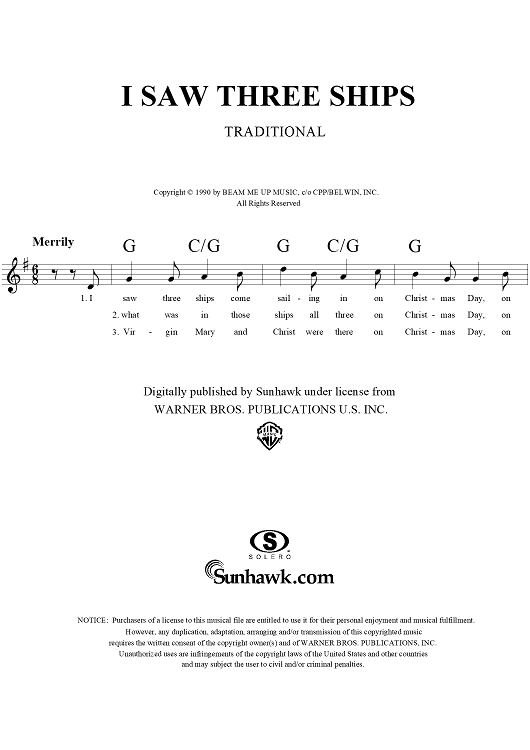Digital Sheet Music for I Saw Three Ships by Traditional scored for Lead Sheet; id:118741