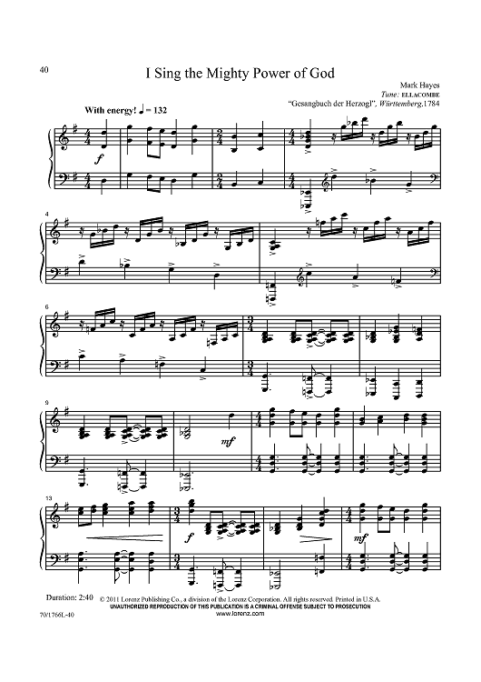 Digital Sheet Music for I Sing the Mighty Power of God by Mark Hayes, Gesangbuch der Herzogl scored for Piano Solo; id:433680