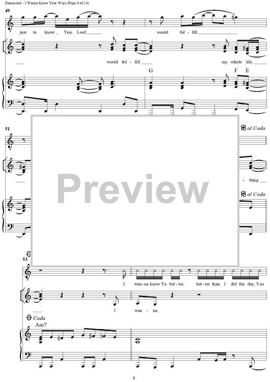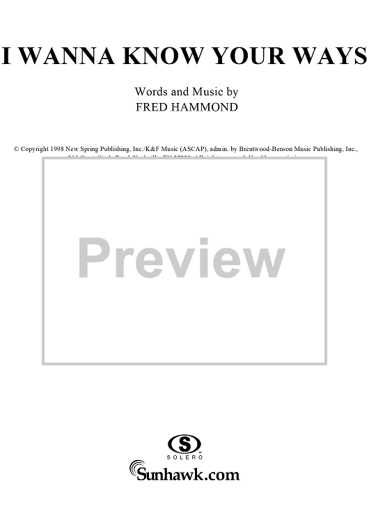 Digital Sheet Music for I Wanna Know Your Ways by Fred Hammond, Radical For Christ scored for Piano/Vocal/Chords; id:266859