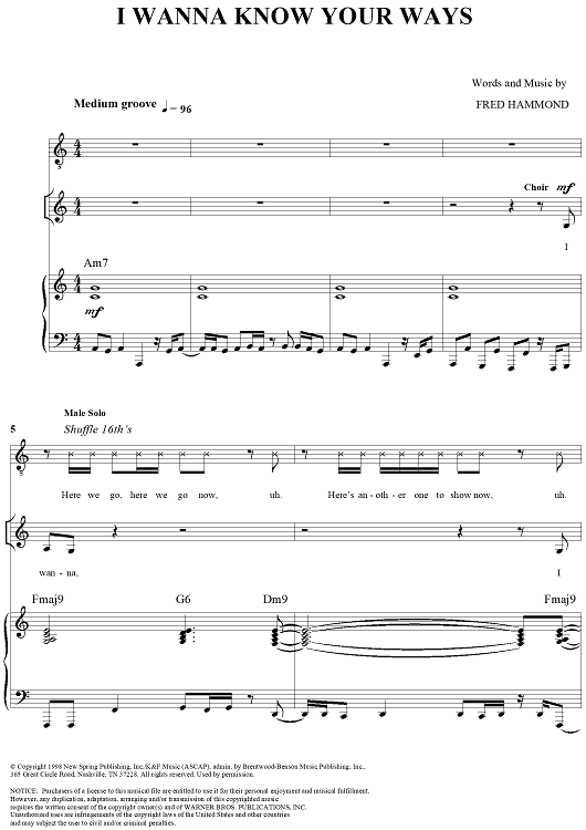 "I Wanna Know Your Ways" Sheet Music by Fred Hammond
