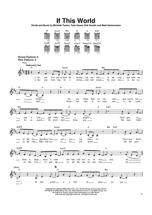 Digital Sheet Music for If This World by Jaci Velasquez, Mark Heimermann, Michelle Tumes, Tyler Hayes, Erik Sundin scored for Easy Guitar; id:393247