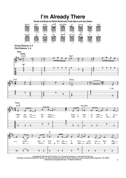 Digital Sheet Music for I'm Already There by Lonestar, Gary Baker, Frank Myers, Richie McDonald scored for Easy Guitar Tab; id:370778