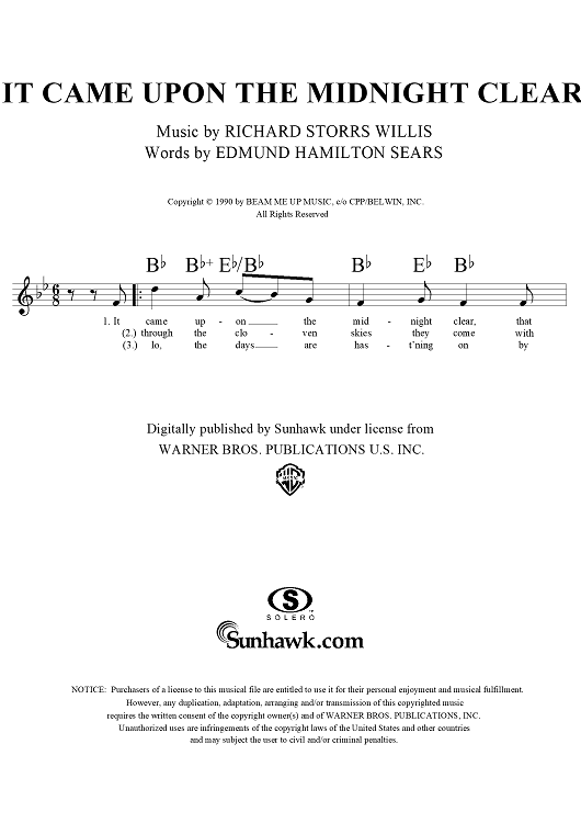 Digital Sheet Music for It Came Upon the Midnight Clear by Edmund Sears, Richard Storrs Willis scored for Lead Sheet; id:118744