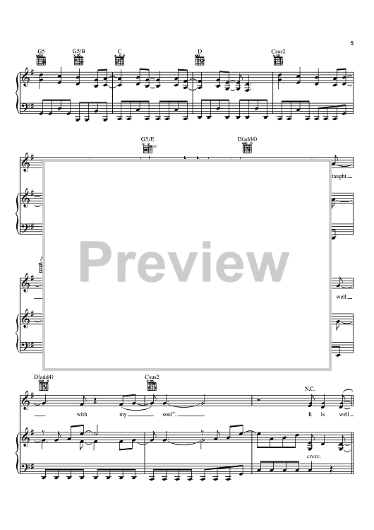 Digital Sheet Music for It Is Well With My Soul by Rebecca St. James, Philip P. Bliss, Horatio G. Spafford scored for Piano/Vocal/Chords; id:369032