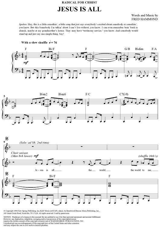 Digital Sheet Music for Jesus Is All by Fred Hammond, Radical For Christ scored for Piano/Vocal/Chords; id:266846