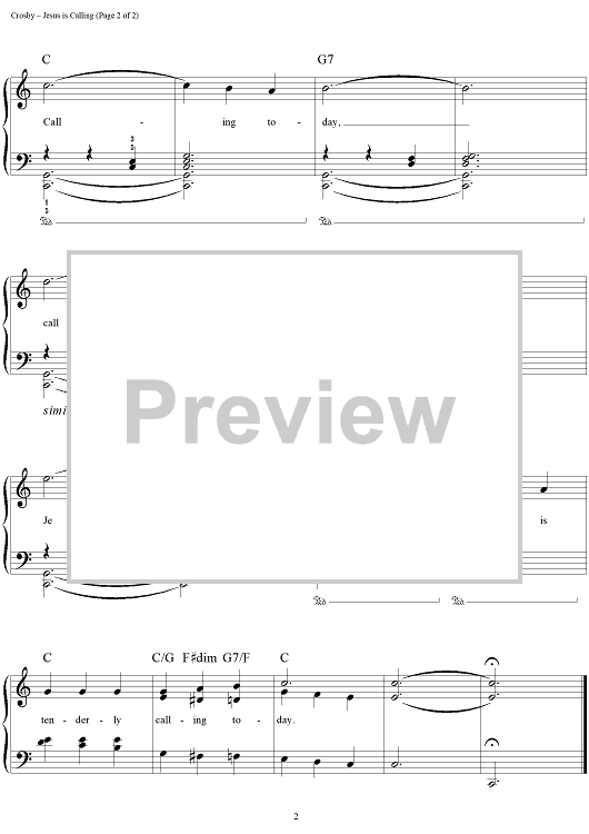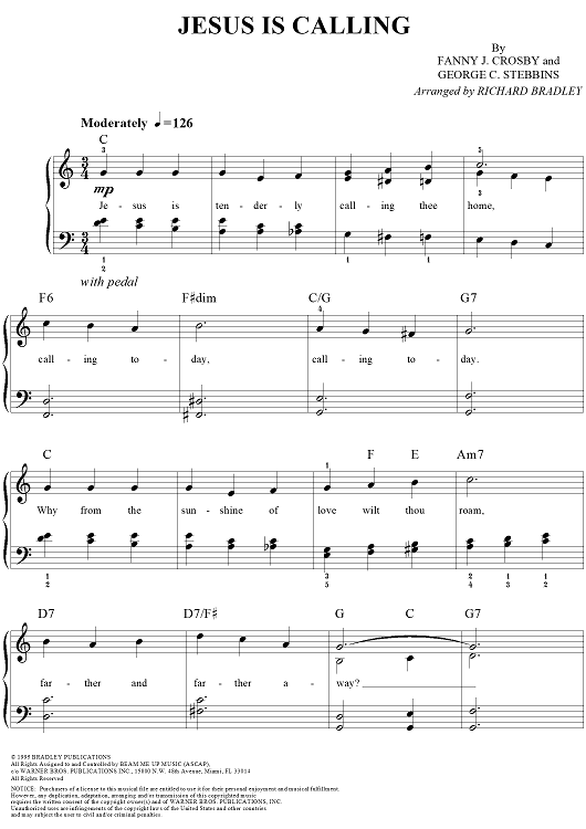 Digital Sheet Music for Jesus Is Calling by Richard Bradley, George C. Stebbins, Fanny Crosby scored for Easy Piano/Vocal; id:272017