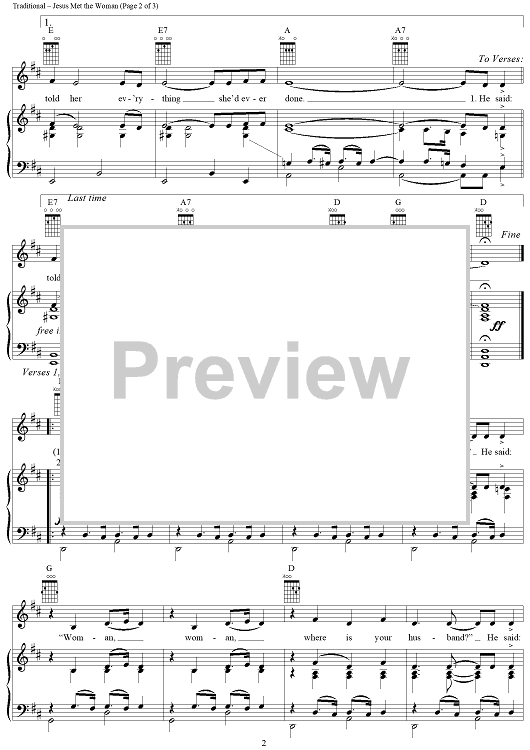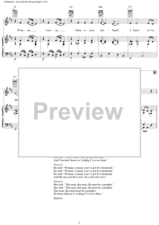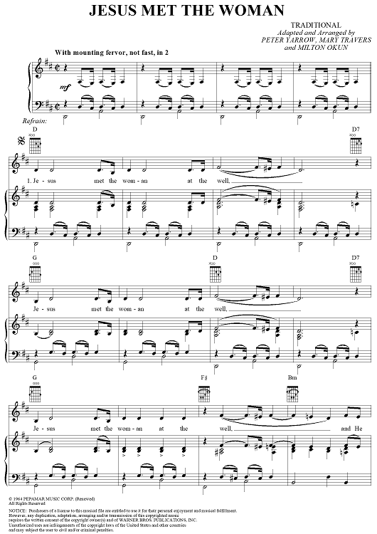 Digital Sheet Music for Jesus Met the Woman by Peter Yarrow, Peter, Paul and Mary, Traditional scored for Piano/Vocal/Chords; id:261043