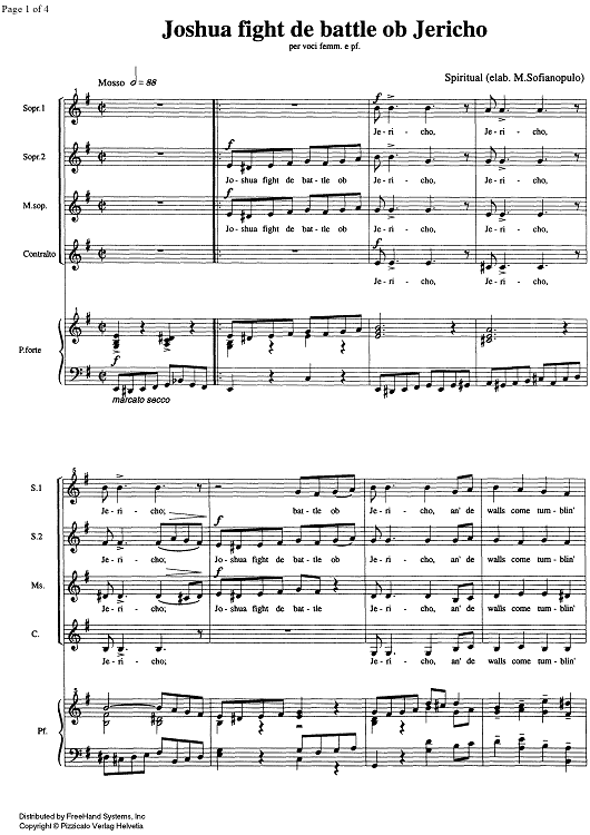 Digital Sheet Music for Joshua Fight de Battle ob Jerico by , Marco Sofianopulo, Traditional scored for Female Chorus/Piano; id:329379