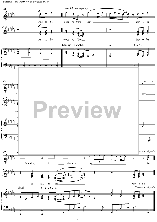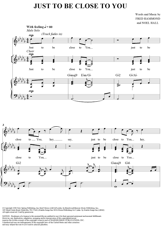 Digital Sheet Music for Just to Be Close to You by Fred Hammond, Noel Hall, Radical For Christ scored for Piano/Vocal/Chords; id:266862
