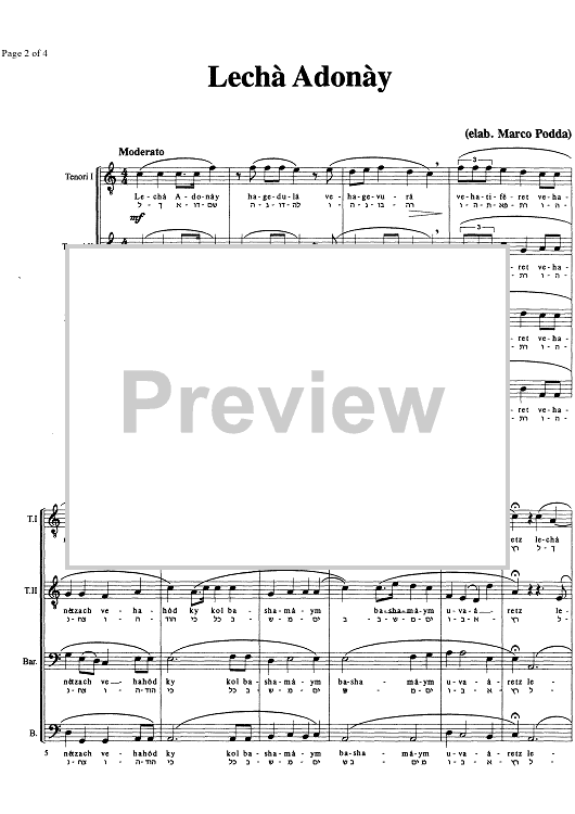 Digital Sheet Music for Lechà Adonày by , Marco Podda, Traditional scored for Male Choir; id:329101