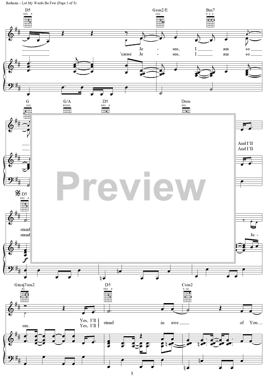 "Let My Words Be Few (I'll Stand in Awe of You)" Sheet Music by Matt Redman