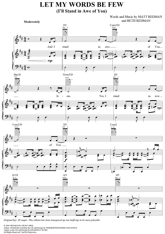 Digital Sheet Music for Let My Words Be Few (I'll Stand in Awe of You) by Matt Redman, Rebecca St. James, Beth Redman, Phillips, Craig and Dean scored for Piano/Vocal/Chords; id:367298