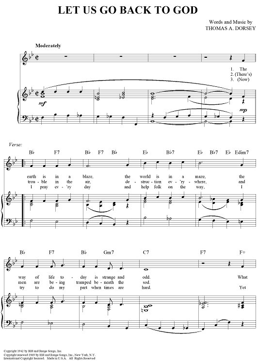 "Let Us Go Back To God" Sheet Music by Thomas A. Dorsey
