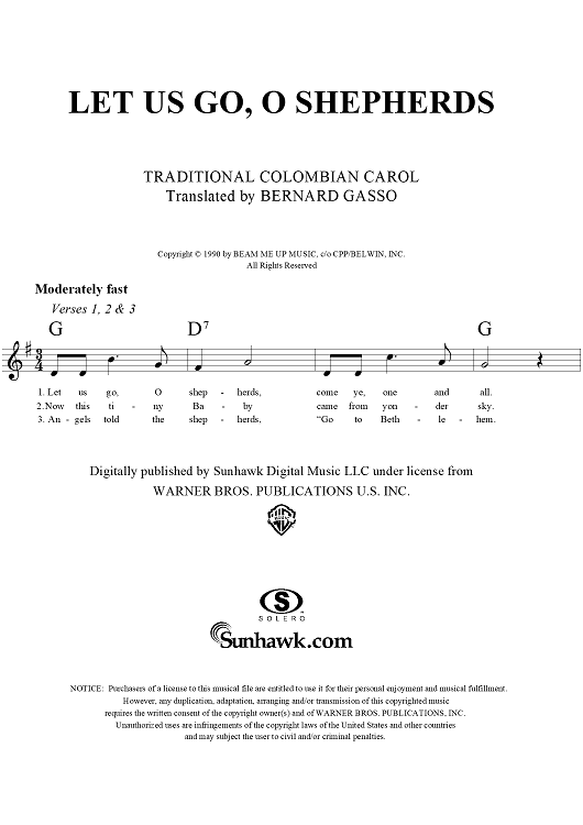 "Let Us Go, O Shepherds" Sheet Music by Traditional