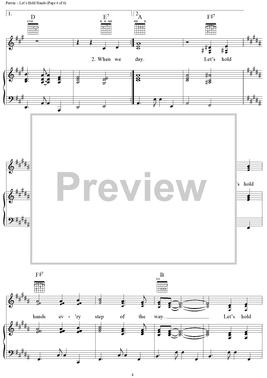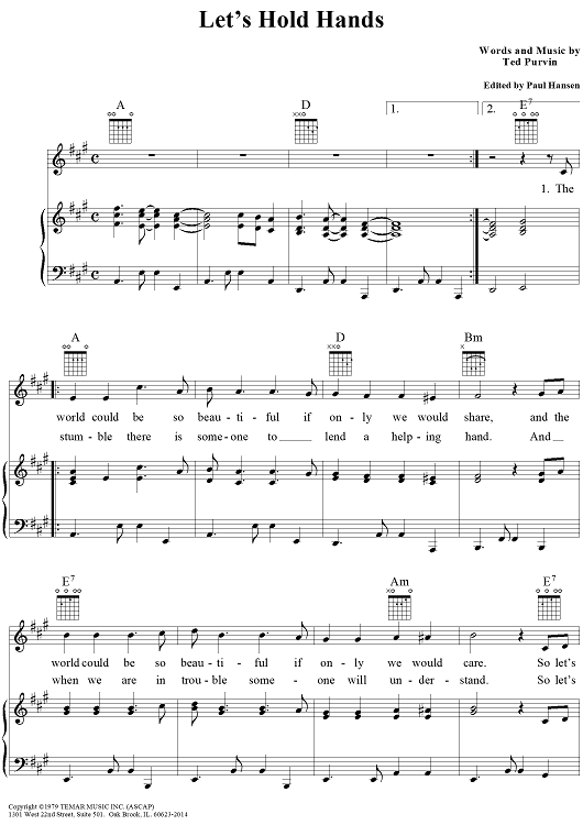 Digital Sheet Music for Let's Hold Hands by Ted Purvin, The Kendalls, The LeGarde Twins, Bobby Bare, Jack Grayson scored for Piano/Vocal/Chords; id:95935