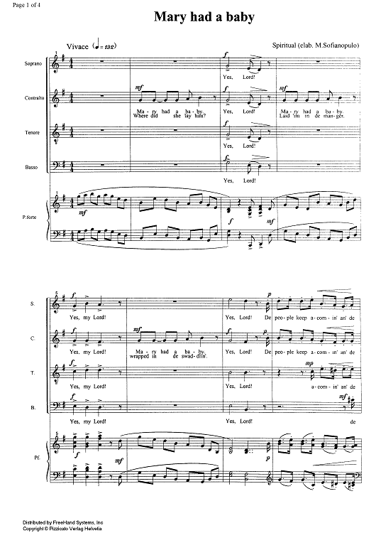 Digital Sheet Music for Mary Had a Baby by Marco Sofianopulo, Traditional scored for Choir/Piano; id:328915